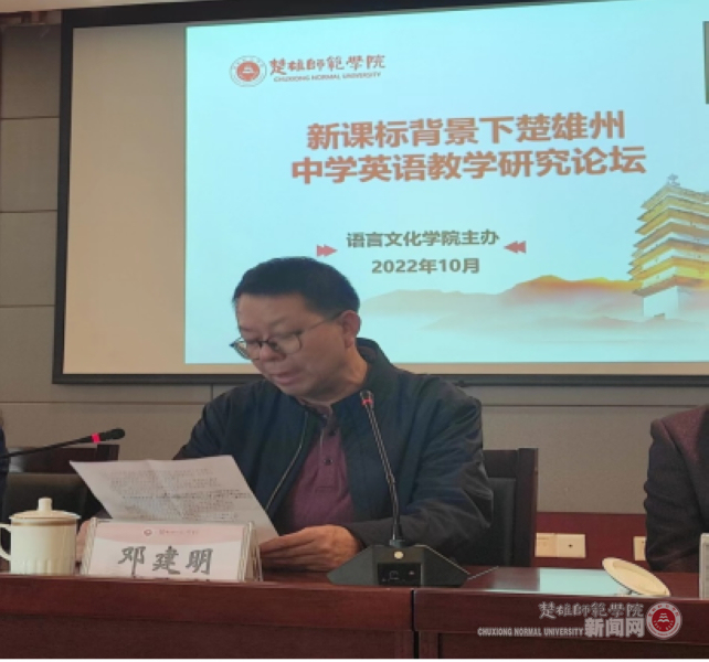 为进一步发挥高校在地方基础教育研究中的引领作用,构建大学、中小学、政府协同育人机制。楚雄师范学院语言文化学院于2022年10月22日在文鼎酒店举办了新课标背景下楚雄州中学英语教学研究论坛,来自楚雄州各县、市18所中学的教师代表和语言文化学院师生代表120余人(线上+线下)参加了论坛活动。楚雄师范学院王资校长、教务处彭燕梅处长、楚雄州教育体育局教科所邓建明副所长、语言文化学院党政班子成员出席了论坛开幕式。