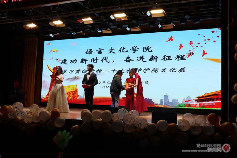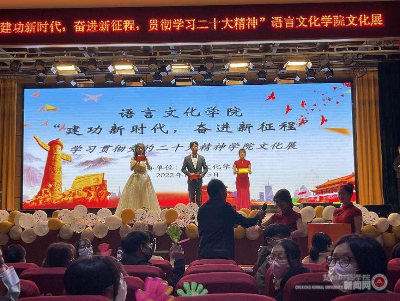 为深入学习宣传贯彻党的二十大精神,11月26日晚,语言文化学院“奋进新征程·建功新时代”学习贯彻党的二十大精神文化展在雁塔校区上礼堂举行。语言文化学院部分教师及学生会全体成员、大一部分新生参加了本次活动。