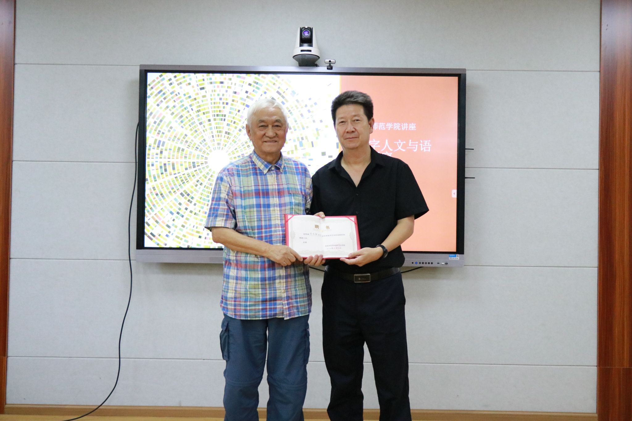 2024年8月31日,教育部语言文字应用研究所杰出学者冯志伟教授,亲临楚雄师范学院语言文化学院指导师生学术成长,开展学术讲座。讲座由副院长鲁国贵主持,院长马建荣向冯志伟教授颁发了楚雄师范学院语言文化学院特聘教授聘书。
