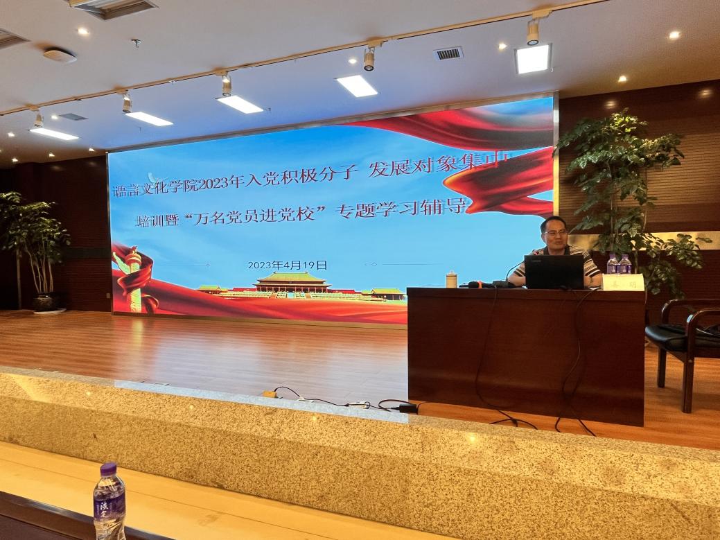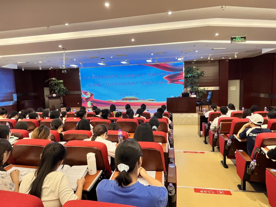 2023年4月19日晚,语言文化学院在文鼎酒店第一报告厅举办了2023年入党积极分子、发展对象和“万名党员进党校”培训暨专题党课讲座。学院党委书记姜明、学生党支李桃梅、旃小桐、李瑶、罗晓欢以及全体学生党员、发展对象、入党积极分子共300多人参加了本次开班仪式暨专题学习辅导讲座,会议由学生第五党支部书记李桃梅老师主持。
