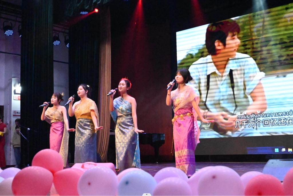 丰富多彩的节目依次登场,表演精彩纷呈,演员们活力四射。有极具个性的敦煌舞《吟游诗人舞》,有泰语歌唱《年月日》,更有肖传洋、杜心雨、郑军荣三位同学的倾情演唱,将晚会推向高潮!2022级级英语1班的合唱《凤凰花开的路口》传达出了对毕业的不舍。而沈芯叶、杨馨雨、穆婷等同学的舞蹈表演再一次让晚会热闹非凡。