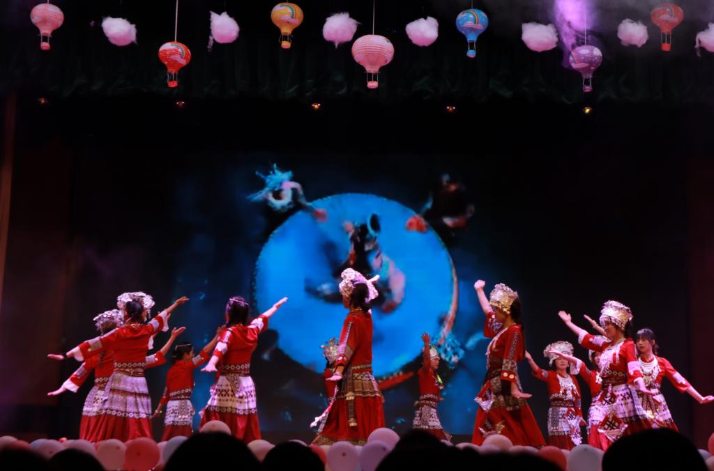 紧接着,晚会精彩的节目正式开始演绎。2022级英语3班带来的苗族舞《太阳鼓》别有一番风味。