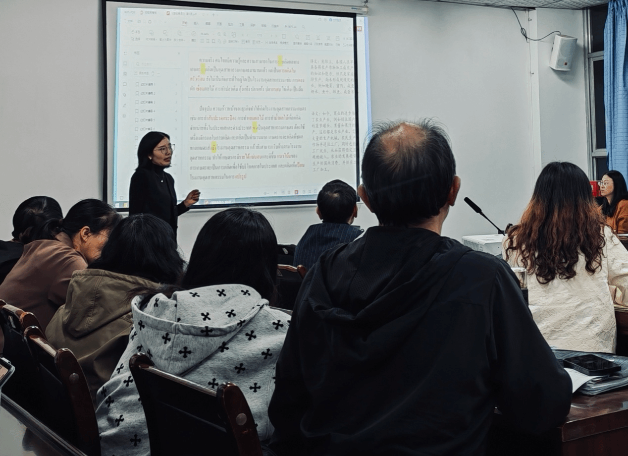 赵秘老师在“泰国农业产业与社会”教学中,以图片对比导入,组织小组讨论,并引导学生以“一句汉语、一句泰语”双语汇报,强化语言应用能力。