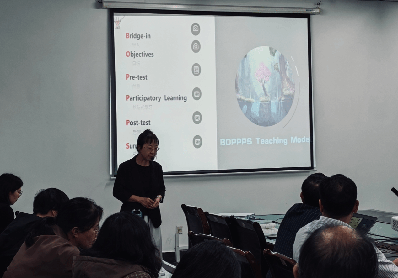 展示结束后,督导专家进行集中点评。刘晓青老师肯定了教学环节完整性、教学方法多样性以及思政元素的有机融入,特别指出李镜老师运用BOPPPS 模式实现教学闭环的亮点,同时建议教师进一步优化 问题设计,增强 OBE 理念落实,并加强对学生回答的精准点评。张黎老师赞扬了课件制作的专业性与学科特色的彰显,建议提升教学素材的利用率,促进思政元素与学科内容的深度结合,并注意合理把控教学节奏,实现“教”与“学”有效衔接。